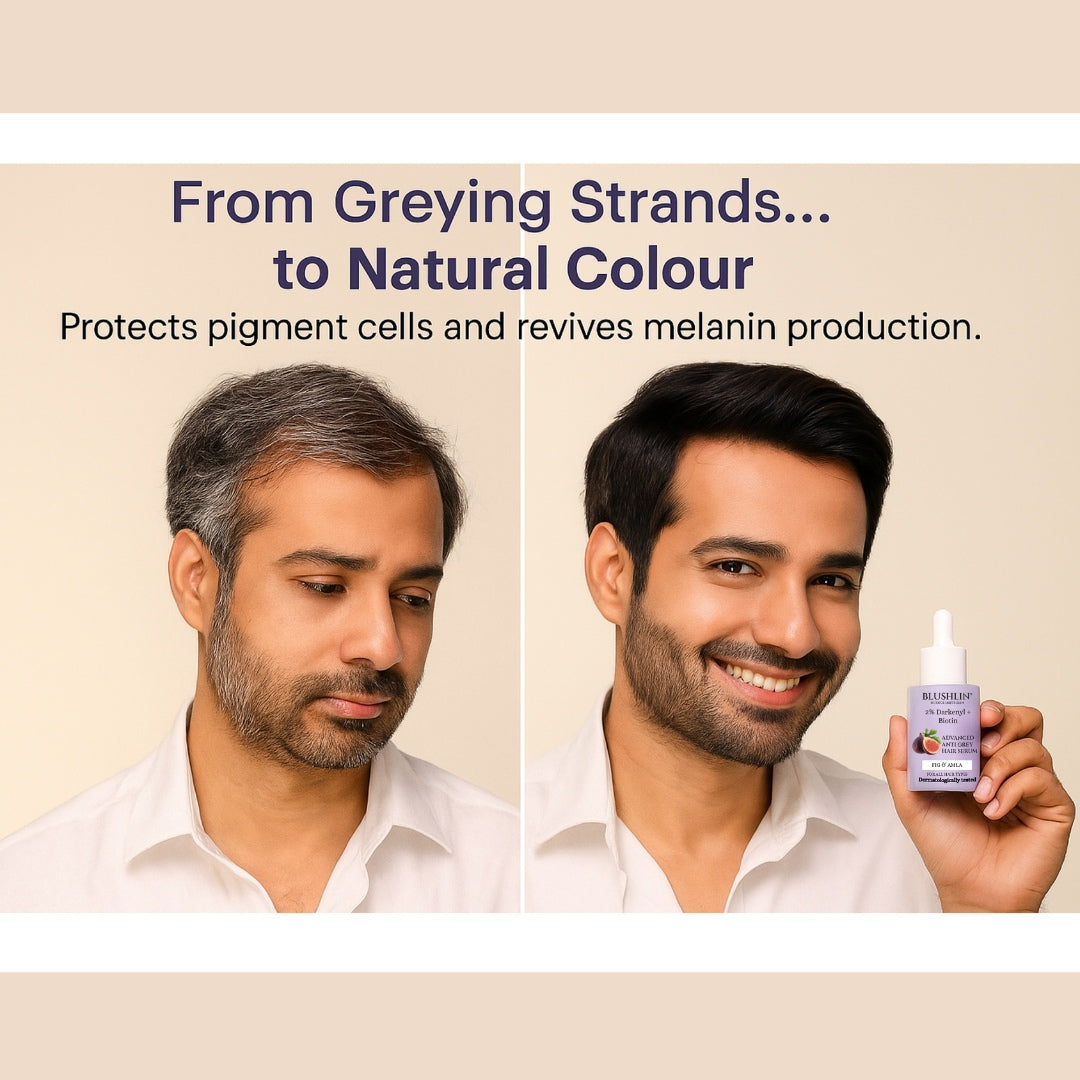 Blushlin Darkenyl stimulates hair follicles to promote regrowth and reduce thinning. It strengthens existing hair and improves scalp health for thicker, denser hair. It extends the anagen phase, encouraging longer-lasting hair growth.